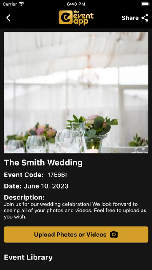 Then they just download the app and enter the event code, and they can upload all the pictures and videos they want, and you have access to all of them!