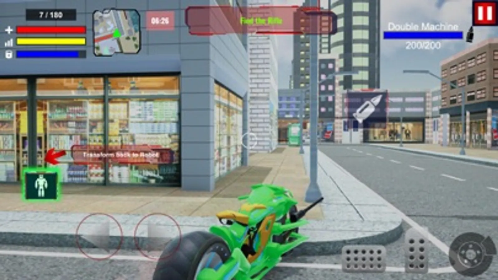 The futuristic robot fight has started. Get ready and experience the incredible gameplay of transforming flying bat robot and moto bike with new weapons and robot transformation to rescue the modern city on a winning note.