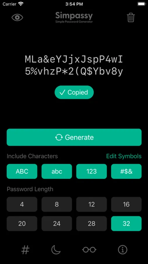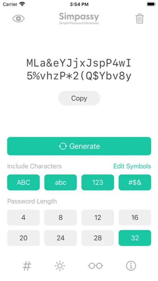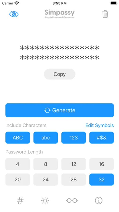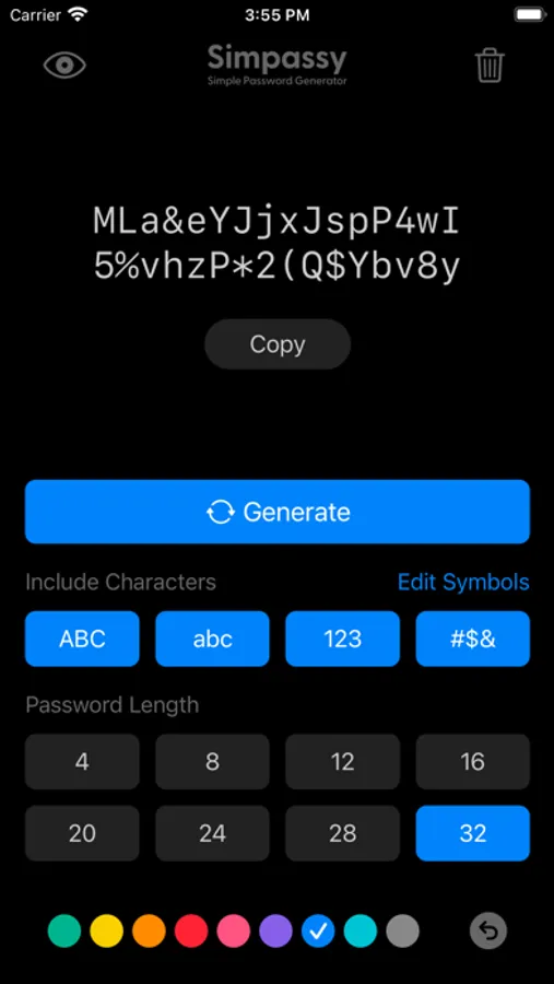 1. Select character type (uppercase, lowercase, numbers, symbols)