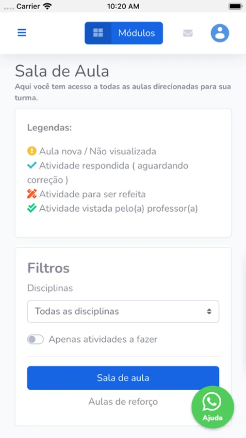 • Acessar módulos de avaliações.