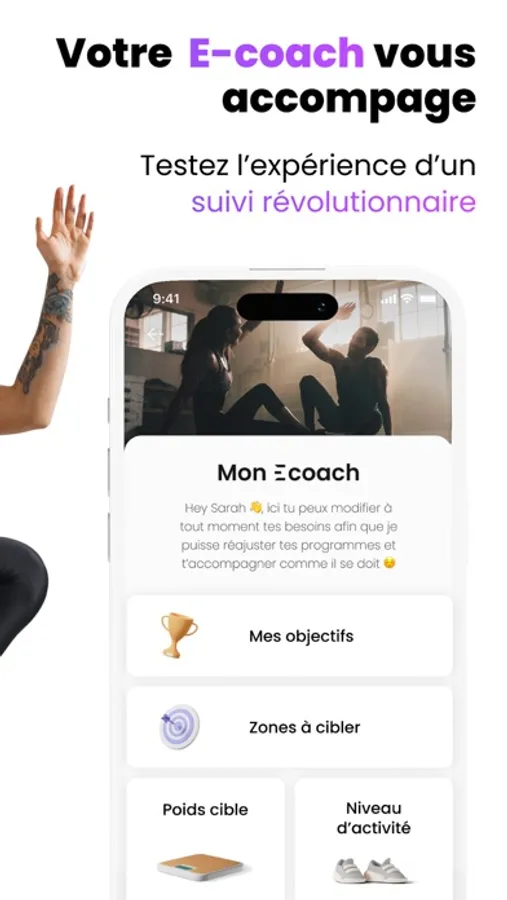Quel que soit votre niveau, depuis chez vous ou en extérieur, avec ou sans matériel, laissez vous accompagner par votre E-coach et atteignez vos objectifs physiques