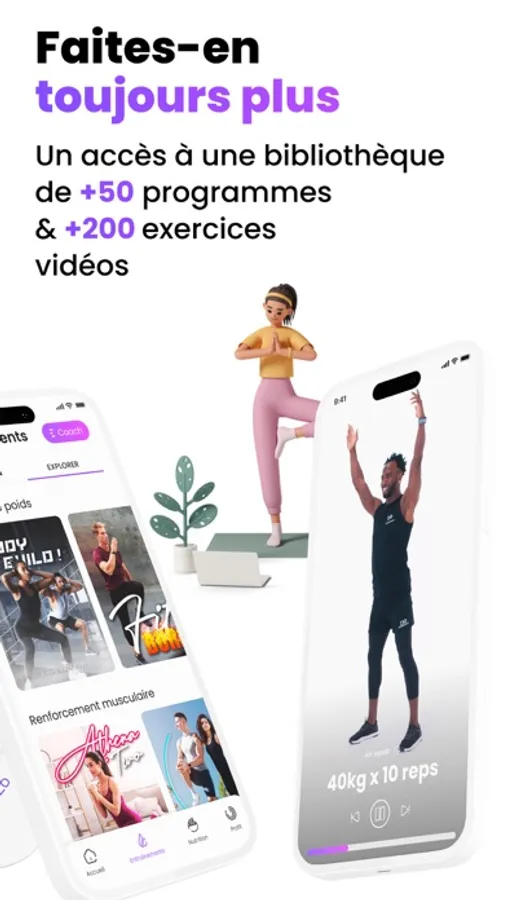 Progressez grâce à une variation de plus de 200 exercices accompagnés de vidéos tutos.