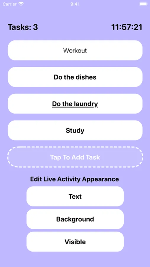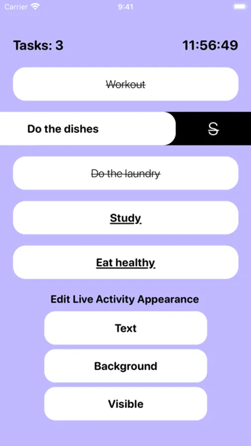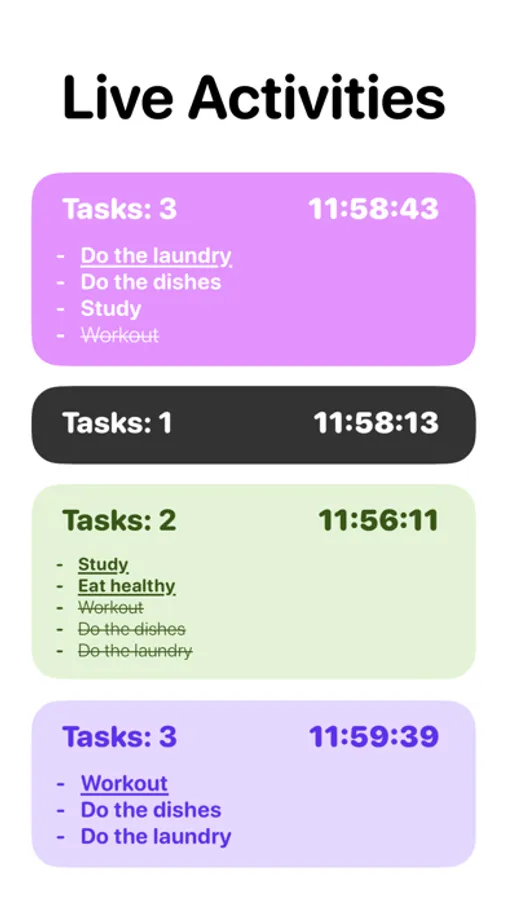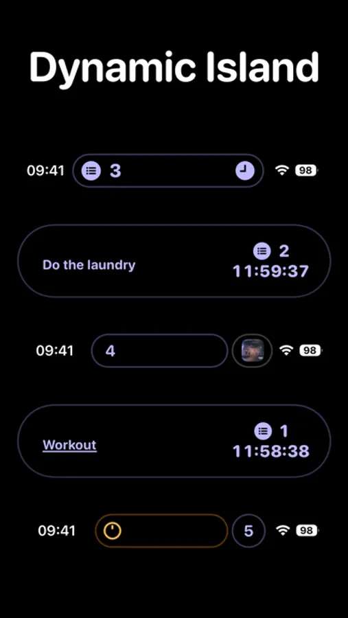 Display your tasks on the Lock Screen and have them always showing above notifications - and also on the Dynamic island. Change the text and background appearance, and choose to hide the tasks.