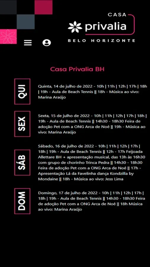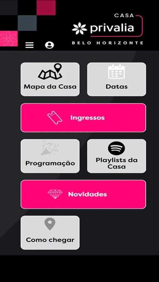 Aplicativo destinado para reserva de ingressos, programações e informações gerais sobre os eventos presenciais da Casa Privalia.