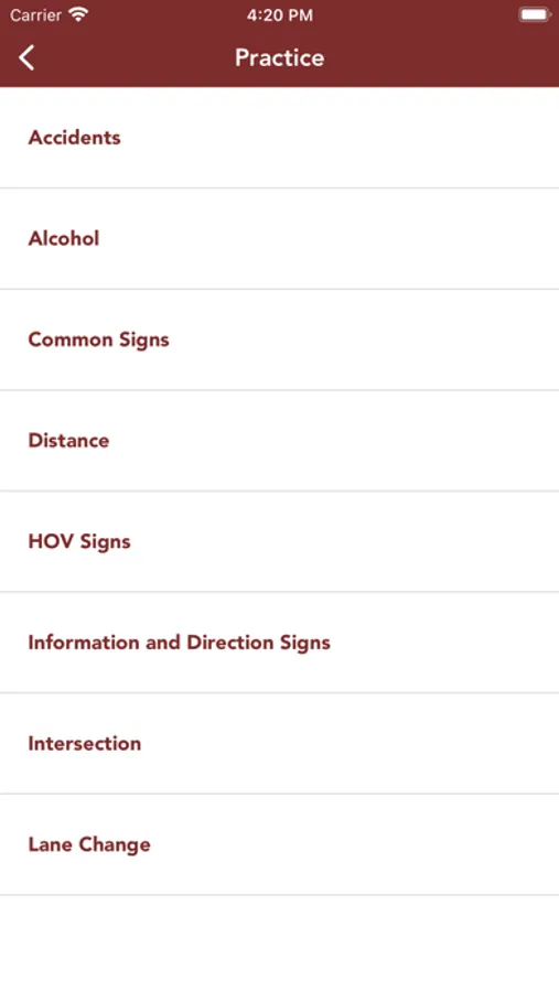 • Study mode: Review the rules of the road and traffic signs at your own pace