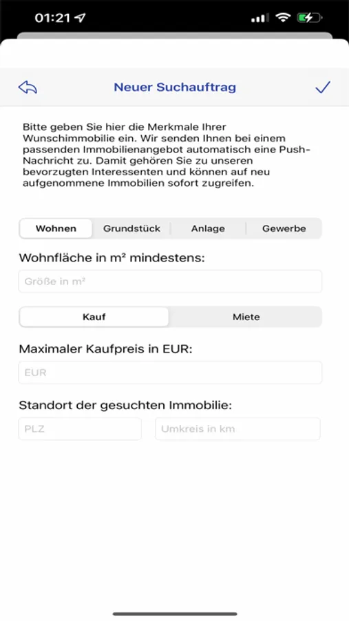 Mit der kostenlosen Immobilien-Schneider-App haben Sie Zugriff auf unseren gesamten Angebotsbestand. Sie können beliebig viele Suchprofile hinterlegen.
