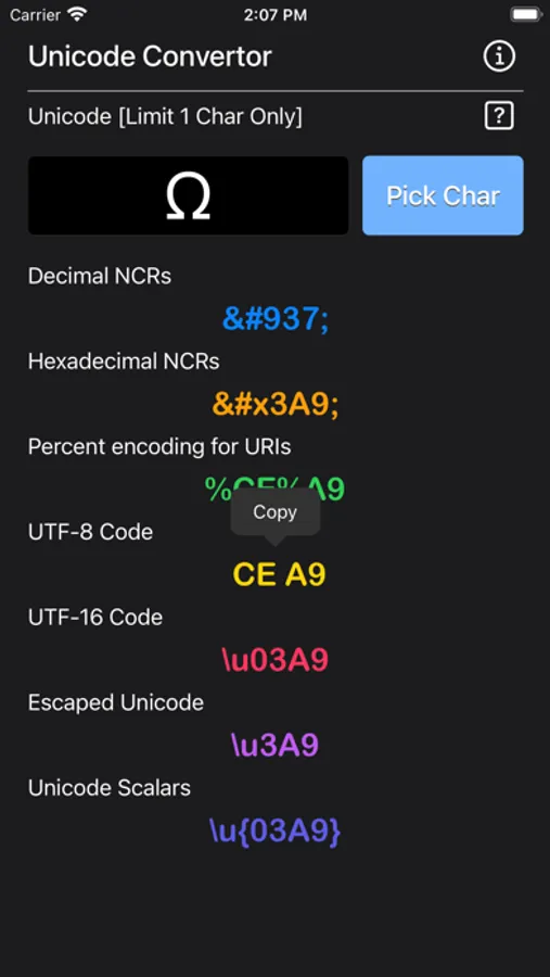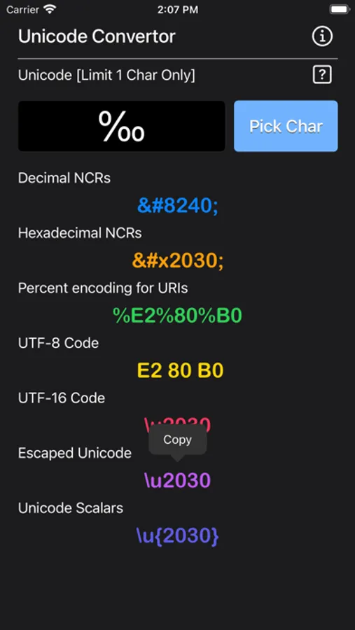 All results are copy-able to another app.