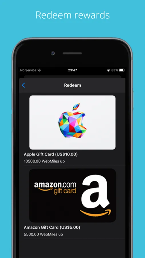 Get 1 WebMile when you using our apps every 3 minutes. You can redeem rewards such as gift card using your WebMiles.