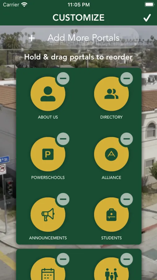 Your Ouchi app is fully customizable by you: Rearrange your portals to easily access whichever features you use most. If you want to check school events frequently, you can put that portal front and center. If you never check the directory, you can turn that portal off.