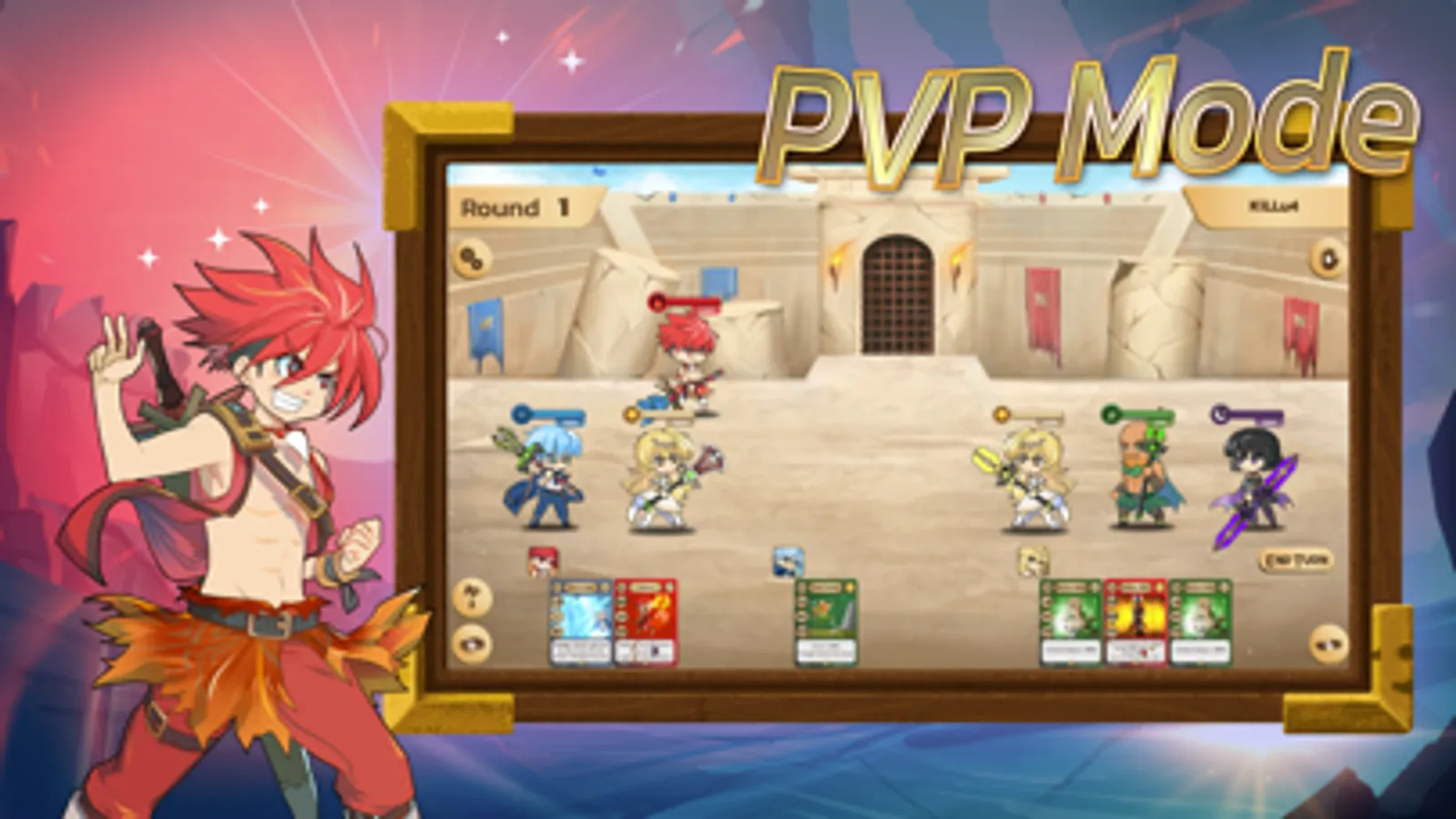 There are two gameplay styles. Firstly, when a player chooses his best three characters team equipped with weapons of choice, a player can pick between two types of battle - PVE and PVP. With the PVE or Player versus Environment mode, a player uses these characters to fight monsters in various stages and earn in-game currency. Another mode is the PVP or Player versus Player mode, a player can choose to compete with another player.