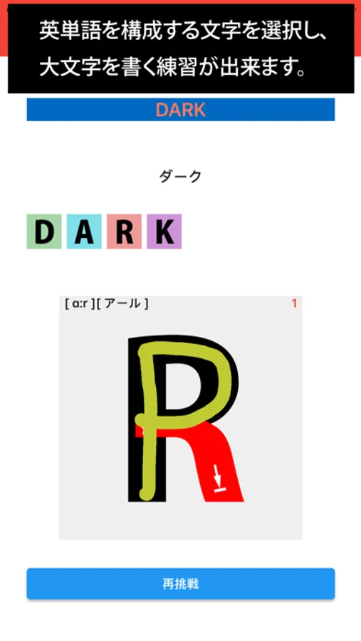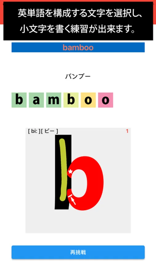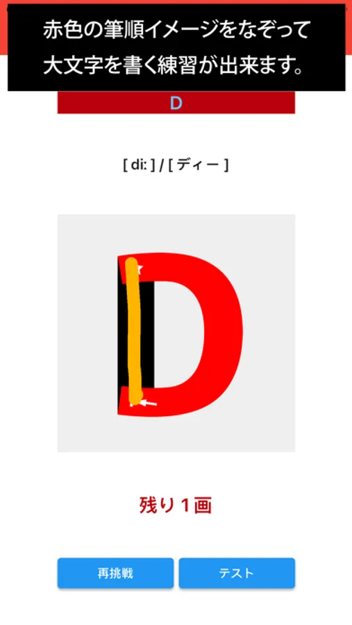On the one part where you could practice 26 letters of the English alphabet, both uppercase and lowercase characters. On this page, you could choose from 26 letters list that shows both phonetic symbols and a pronunciation written in Katakana letters. You could practice a letter following a stroke order, and you could test the letter on a blank paper.