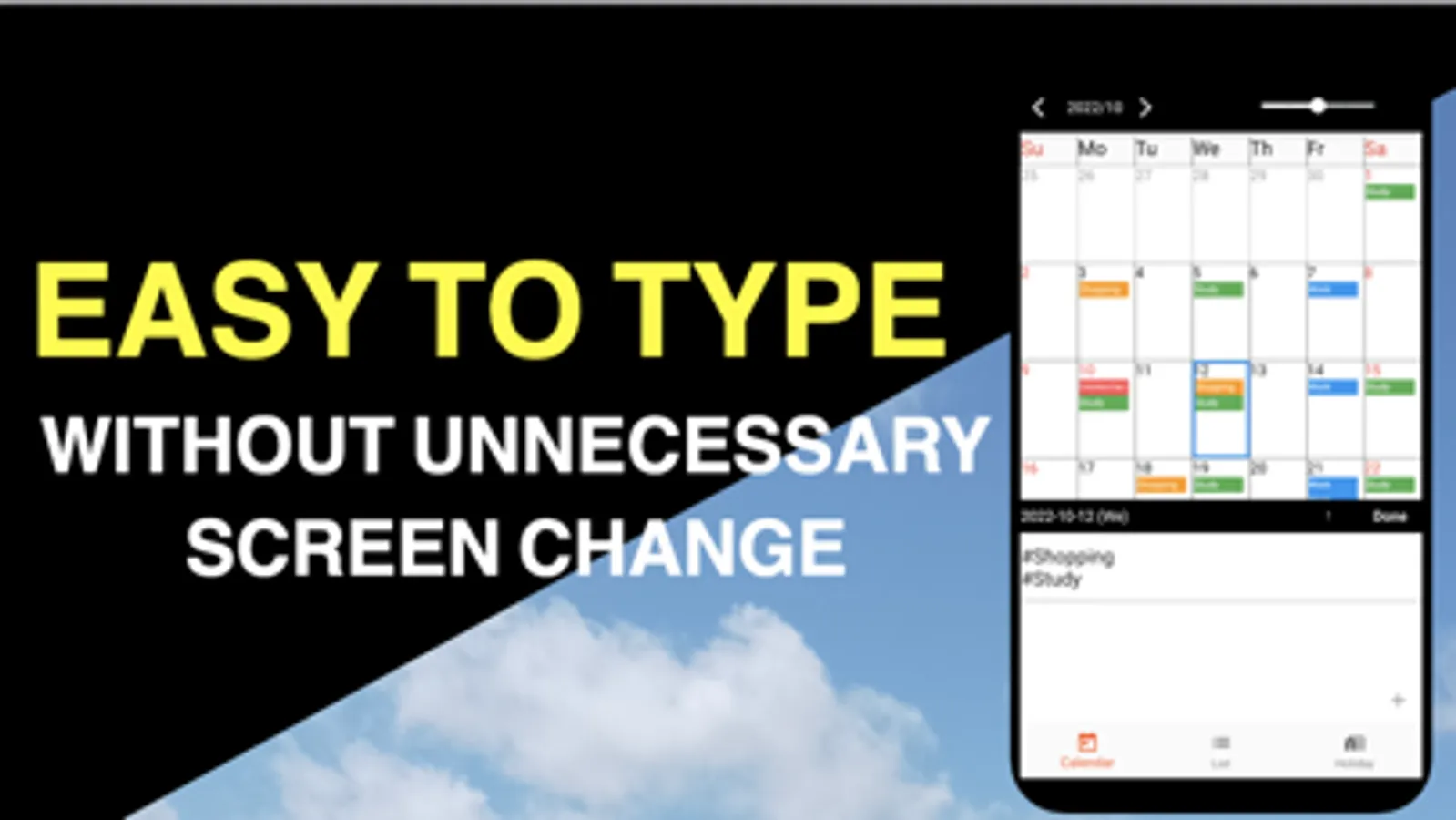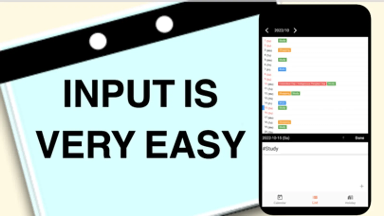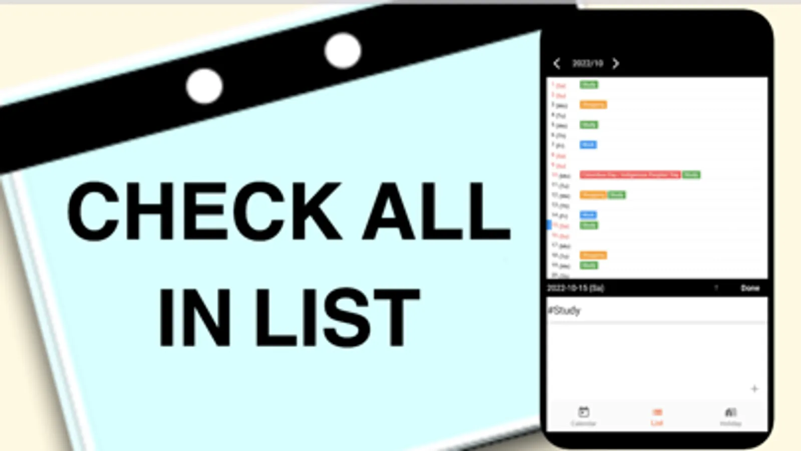 - List calendar : Easy-to-read calendar.