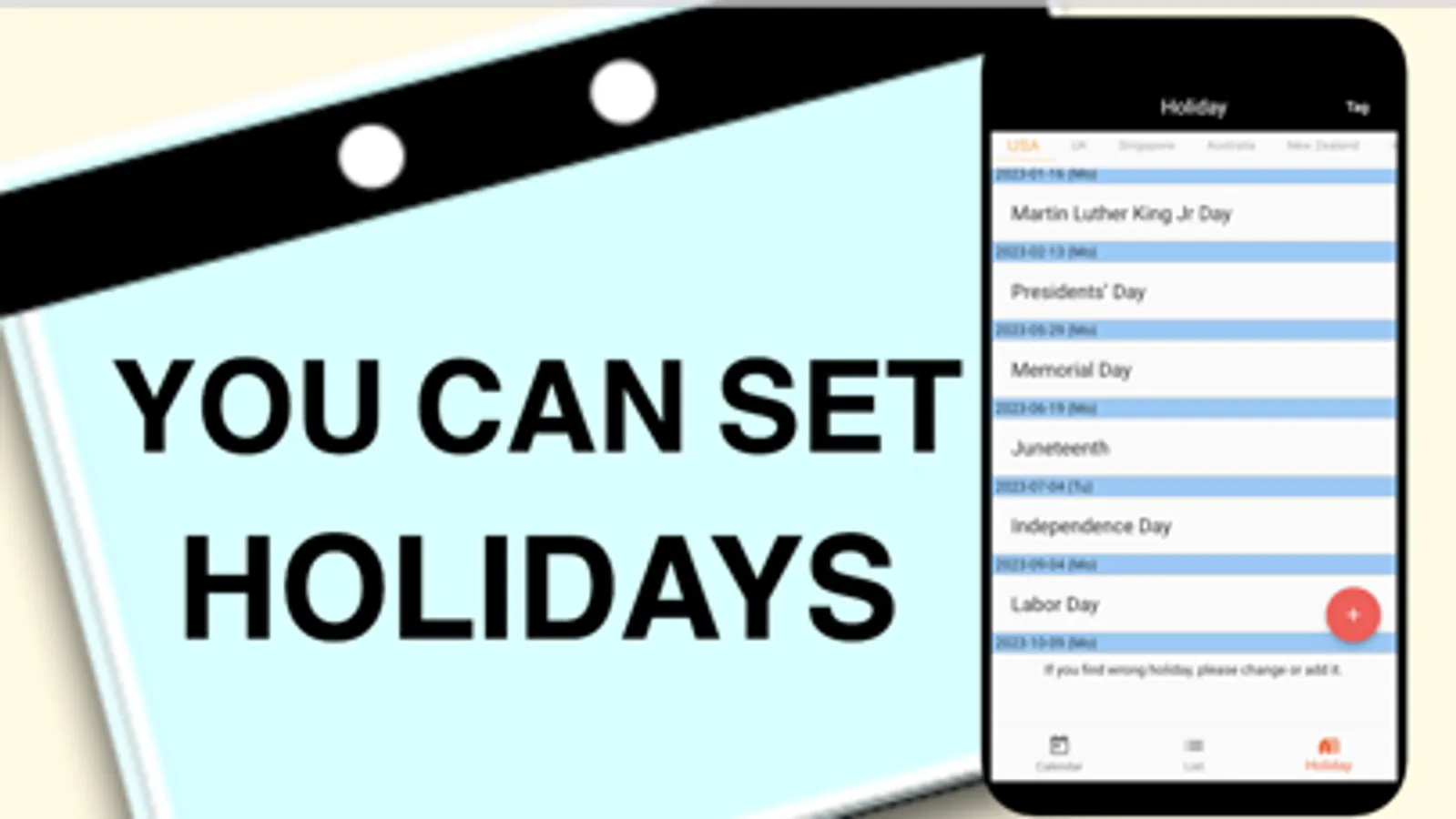 ・In addition to holidays we set on the calendar, you can set holidays as you want.