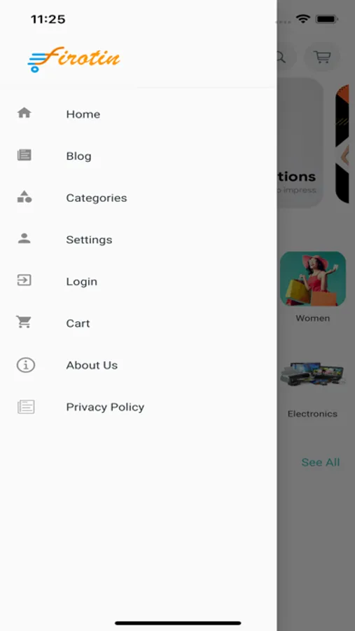 - Registration, sign-in, and account management. All customers will need an account to use the full functionality of the app. They can use existing accounts created on Firotin marketplace website, or they can register a new account in the app. Naturally, the account data is synced between the marketplace and the app.