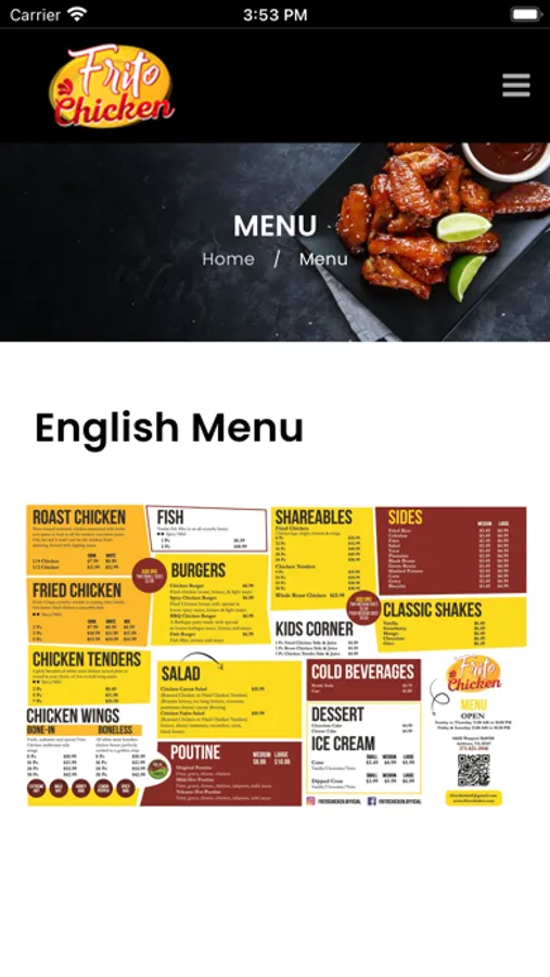 The App will be running the Website for Fried Chicken Restaurant. The App allows to check menu and place order online. All the functionality is running on the website.