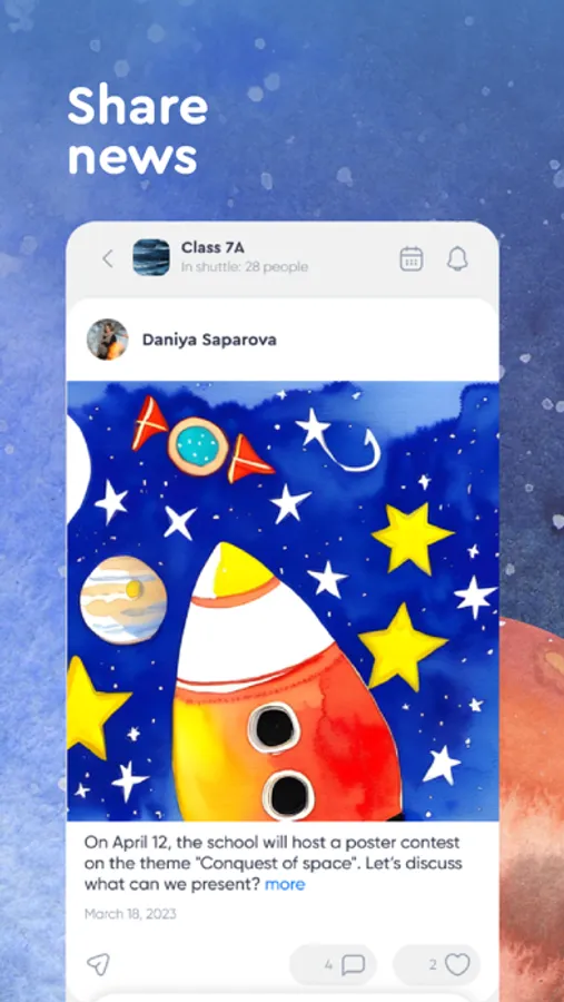 News feed: keep students up to date on the latest events and announcements of your school, college, or university. The news feed lets you stay connected and provide up-to-date information to your students even when they are not at school.