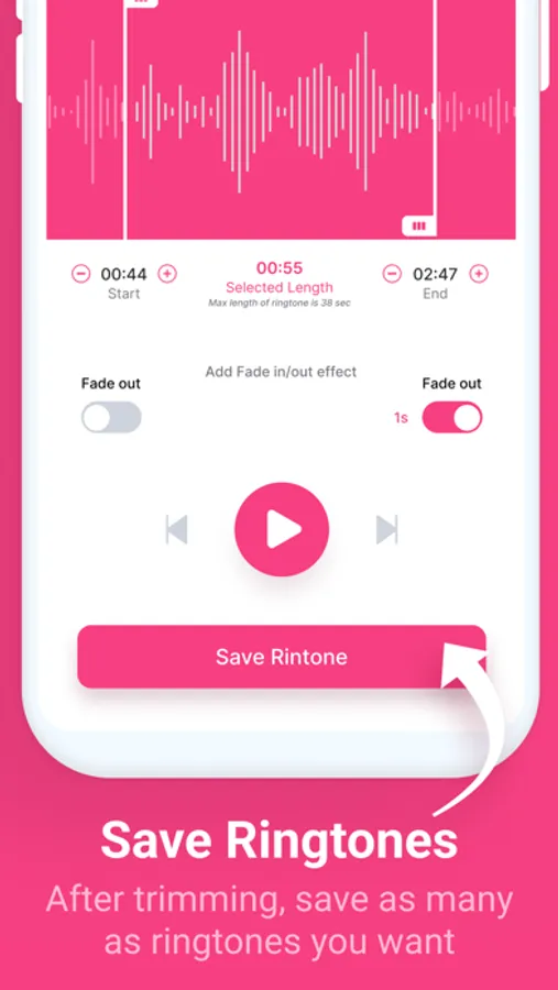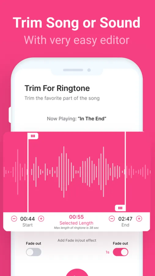 Fade In/Out Effects: Add professional touches to your ringtones with seamless fade in and fade out effects. Smoothly transition into your ringtone or gently fade it out for a polished and refined sound.