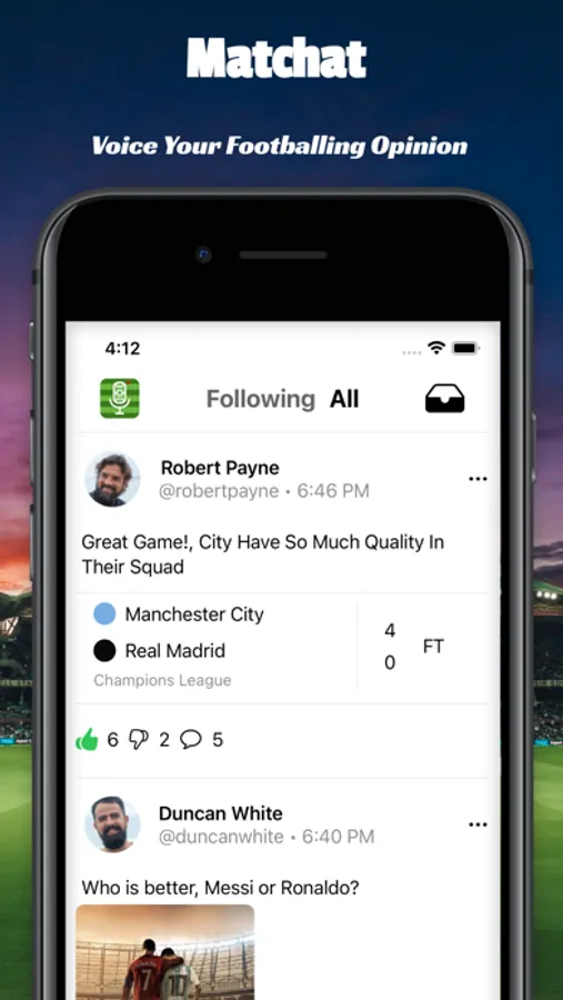 Matchat is a feature whereby people from around the world are able to post their thoughts and footballing opinions for others to interact with. This is a good way to network with other users and to publicly post your viewpoint on the world's greatest sport.
