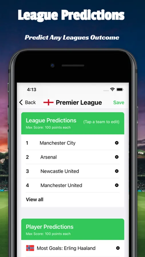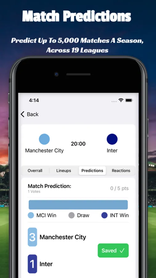 As well as being able to make league predictions you can also predict every game in all of the 19 leagues we feature within our app. You will be awarded 2 points for the correct outcome of a match and 3 points for the correct score, meaning you can earn up to 5 extra points for every game you predict correctly.