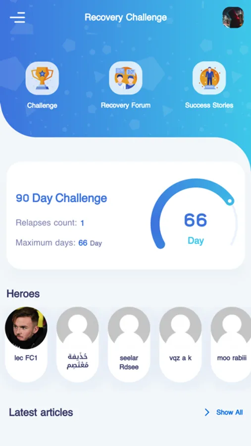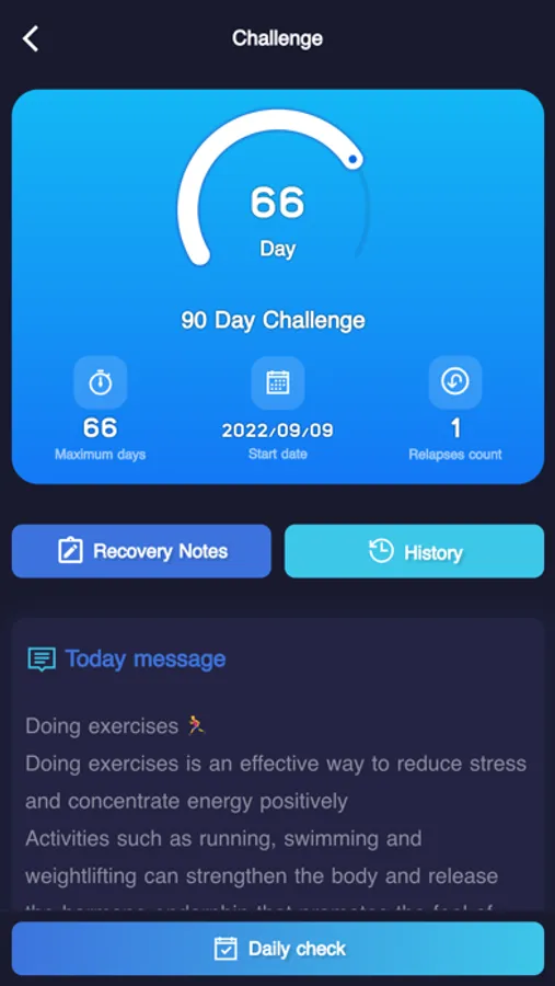 - Challenge (7 days, 30 days, 90 days, 360 days, 500 days)