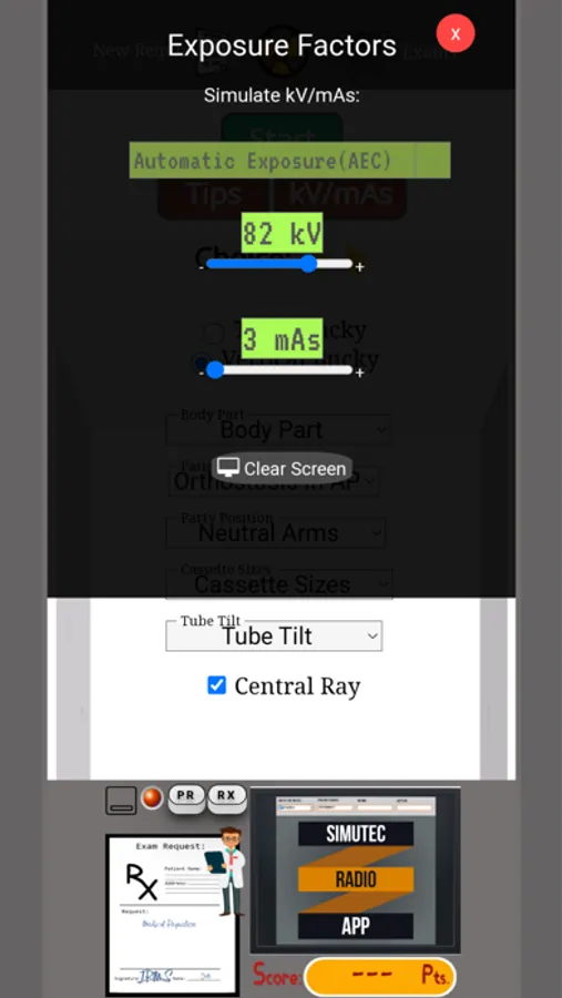 Radiology Tech Simulator for RadTech is a simulator of exams and exposure factors: kVp and mAs for student learning.