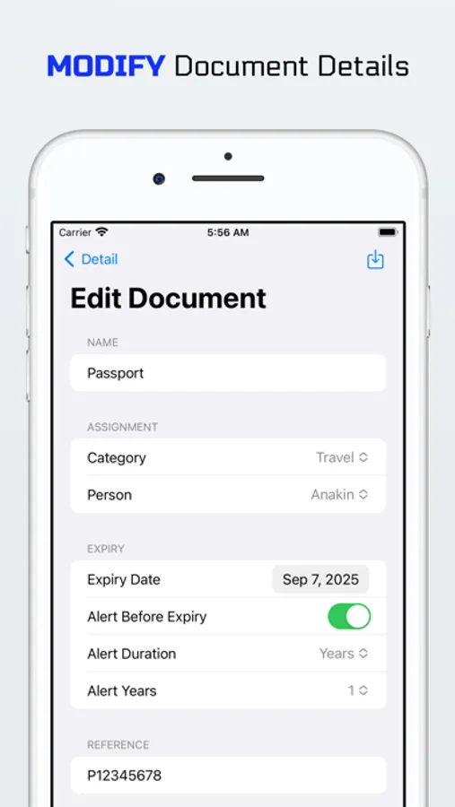 Introducing our user-friendly iOS app designed to effortlessly manage the expiration dates of your family's crucial documents: