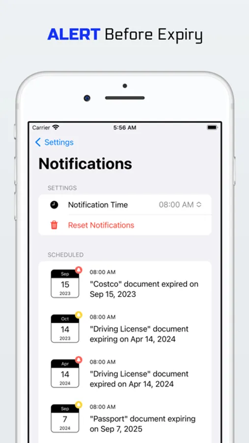 • Stay ahead of the game by setting up alerts that notify you when a document is nearing its expiration date.