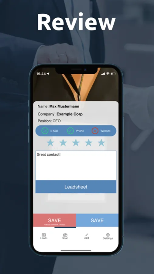 + SAVE AND EVALUATE NEW BUSINESS CONTACTS