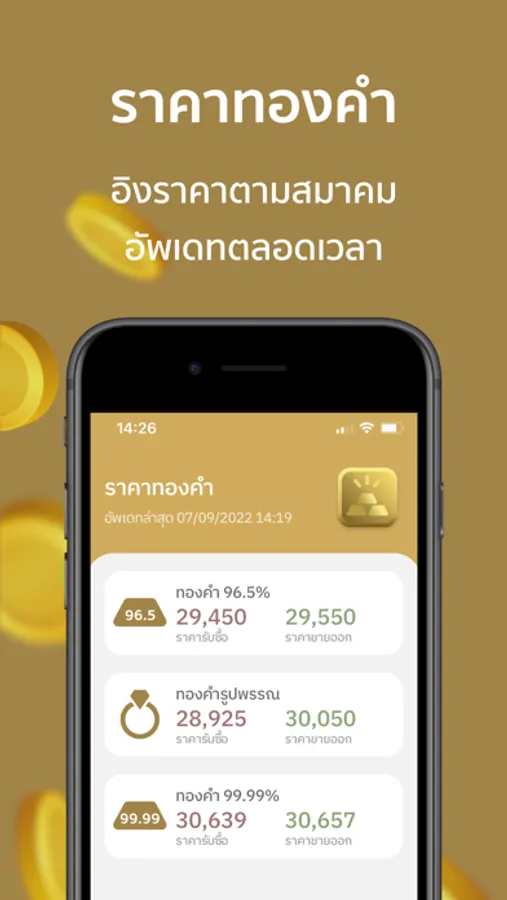 แอพสำหรับดูราคาทองคำ อัพเดทเรียลไทม์ อ้างอิงราคาจากสมาคมและห้างทองชั้นนำ