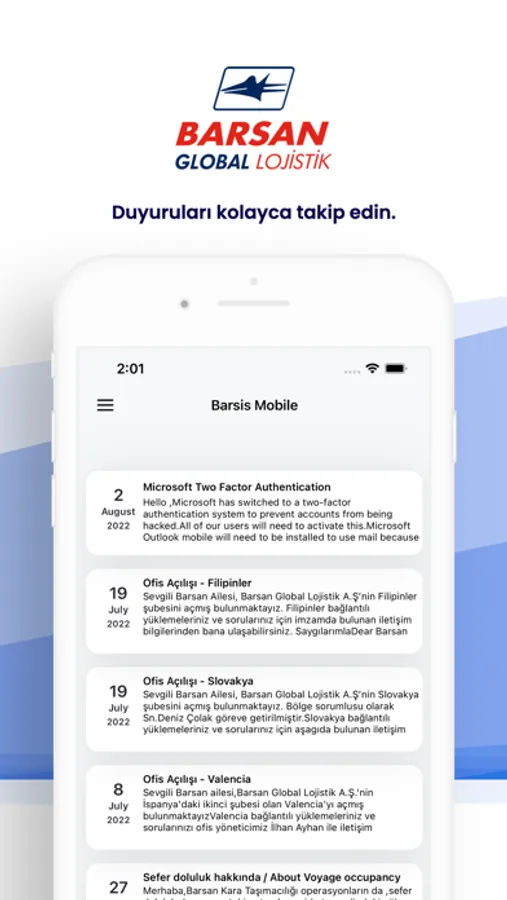 - Duyurular menüsünden Barsan Global Lojistik hakkındaki gelişmelerden haberdar olabilirsiniz.