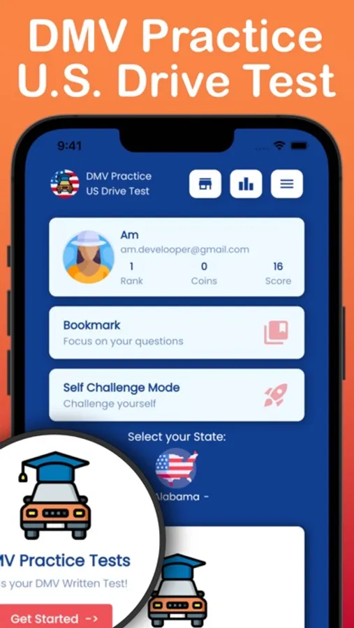 Our app is to help you to successfully pass the DMV written test of your state on the first time.