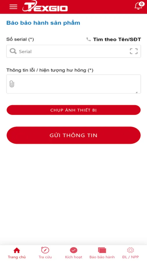 Báo thông tin hỏng, lỗi sản phẩm về trung tâm bảo hành.