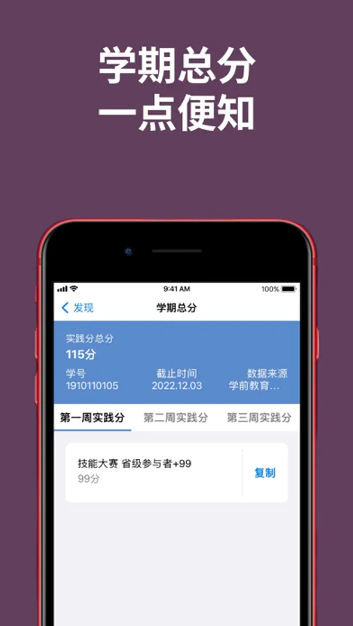 2.汇总分数.帮助用户掌握本学期的总分已经明细.