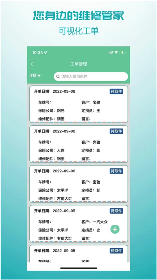 维修厂对客户进行管理,方便快速联系服务。
