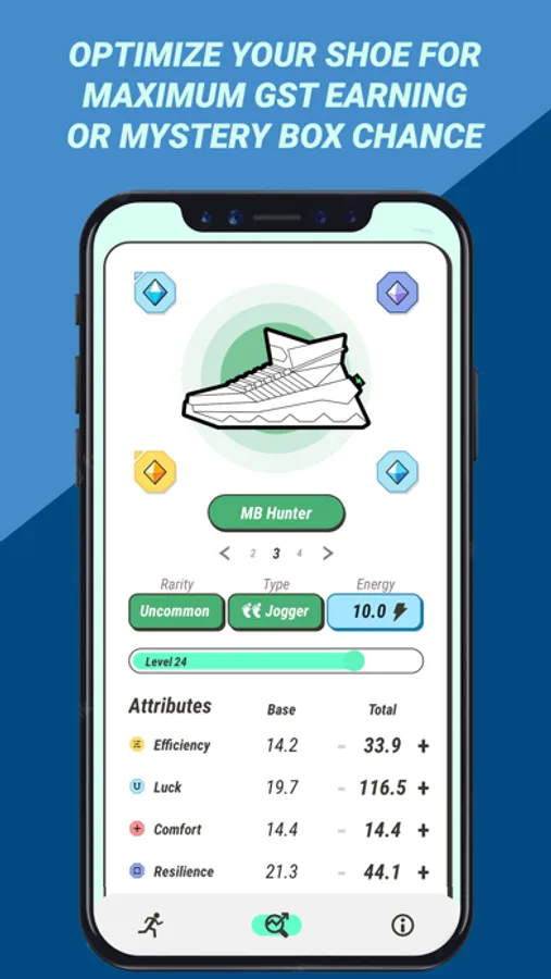 Optimize your earning potential with the shoe optimizer. Save up to six different shoes and calculate your estimated GST & GMT earning, durability loss/repair cost, HP loss/restoration cost, and mystery box chance. See total profit calculated in USD using real-time price data.