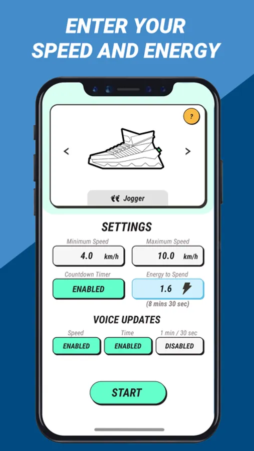 Set a custom speed range or choose the default speed range for your shoe. If you start going too slow or too fast, the app will warn you with an audible alert.