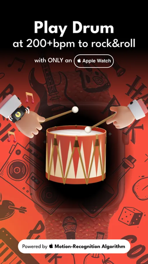 Our app is powered by a motion-recognition algorithm that uses large amounts of data to simulate the sounds of various musical instruments.