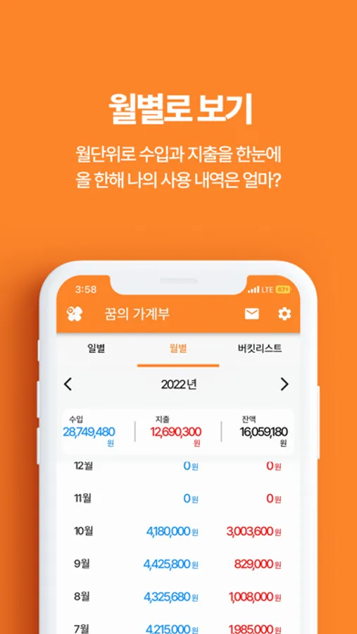 나의 수입과 지출을 기록하여 원하는 목표를 이룰 수 있게 도와 줍니다.