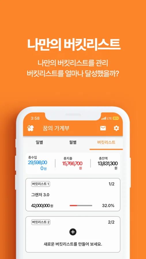 버킷리스트와 금액을 설정하여