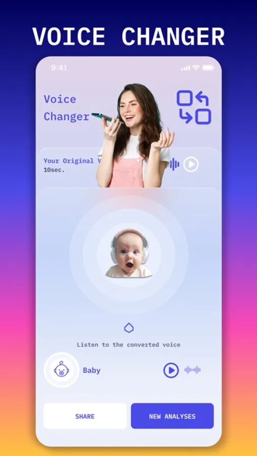 Our Advanced AI Voice Changer technology listens to your voice; carefully analyzes it, and reveals your unique Personality Traits and Personality Types. Whether you want to sound Scary, like a chipmunk on Helium, a cute Baby, or even a futuristic Robot, ECHO offers a wide range of voices to explore your creativity.