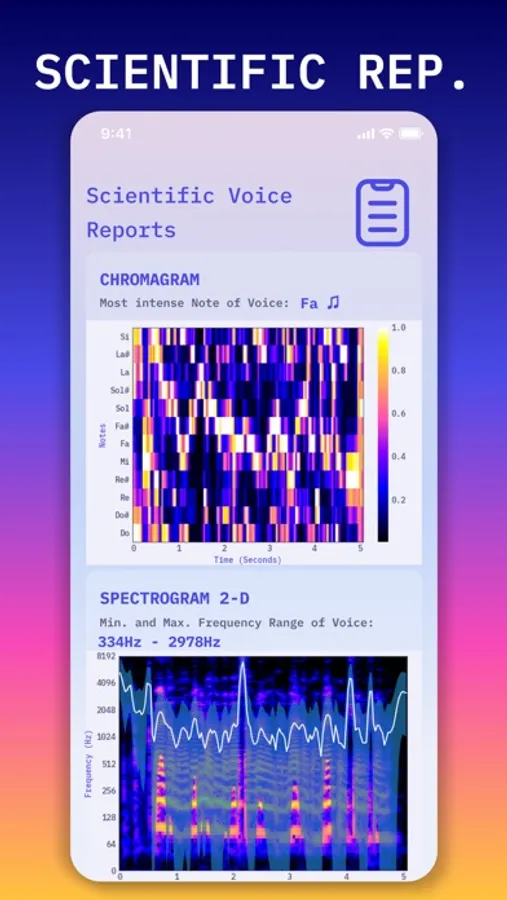 This tool shows several technical analyses (Spectrogram, Chromagram, and details) that voice map across the different pitches.