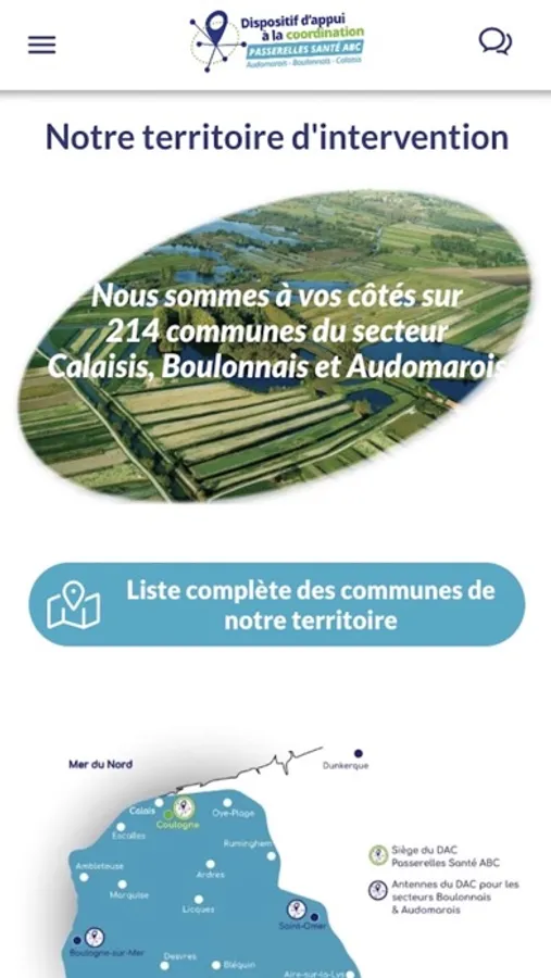 Retrouvez toutes les informations utiles, le territoire en détail ainsi que toutes les actions menées par votre DAC Passerelles Santé ABC sur l'Audomarois, le Boulonnais et le Calaisis