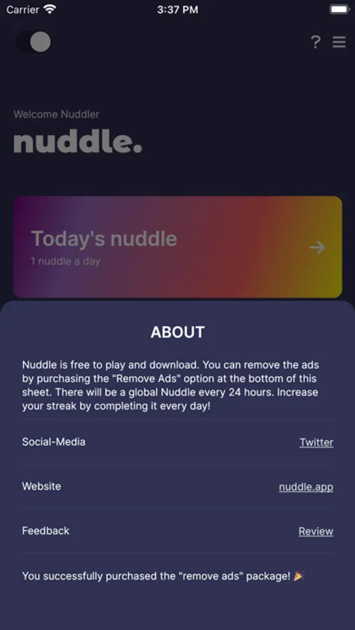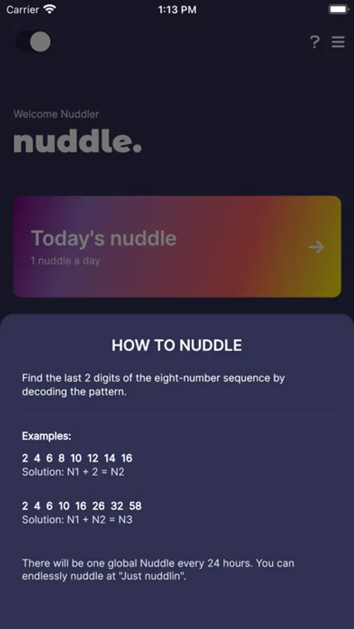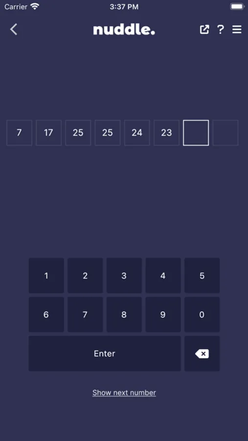 Nuddle is a global puzzle community for short number puzzles. A puzzle consists in each case of an 8-digit sequence of numbers, which come about due to a certain system. 6 of these eight numbers are given, and you have to recognize the system based on them. If you find out the missing 2 numbers, you have solved the number puzzle. There is a global puzzle every day, which you can solve. By solving this puzzle you build up a streak. Furthermore, you can solve an infinite number of randomly generated sequences throughout the day.