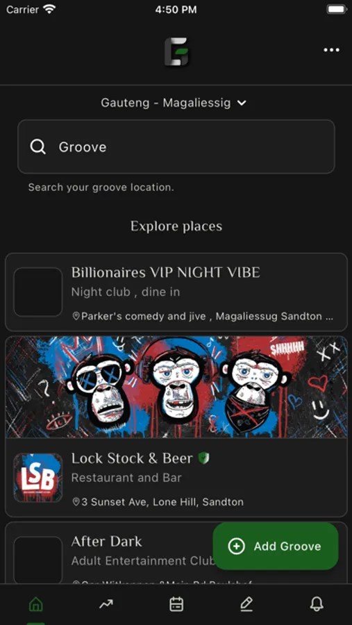 Groove allows people to search for party/clubbing locations and experiences based on their specific preferences.