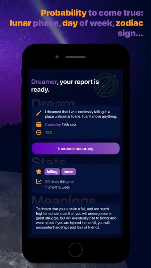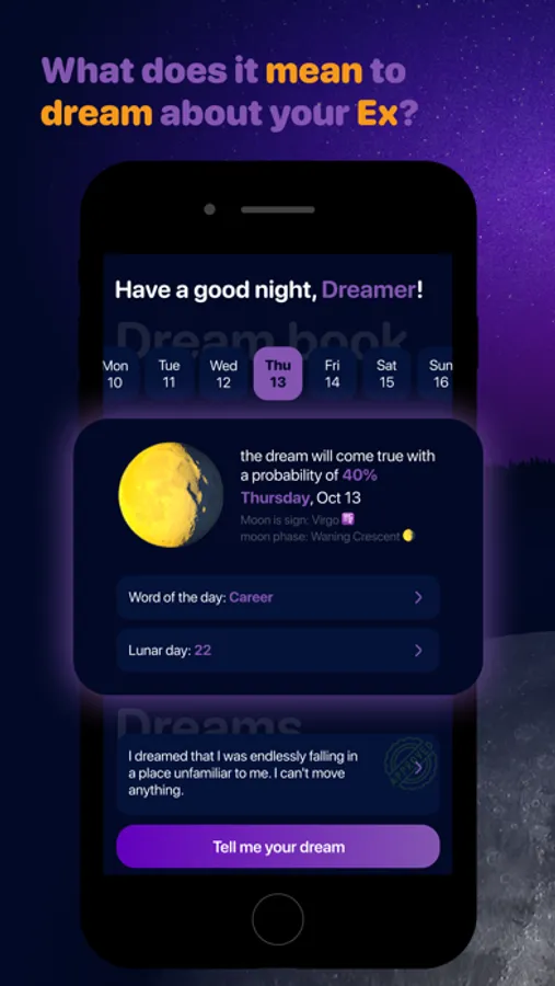 Let the stars, moon and your dreams reveal all the secrets! Begin to understand yourself and your nature, get insights about the future and much more. You can't even imagine how much your dreams can tell about you!