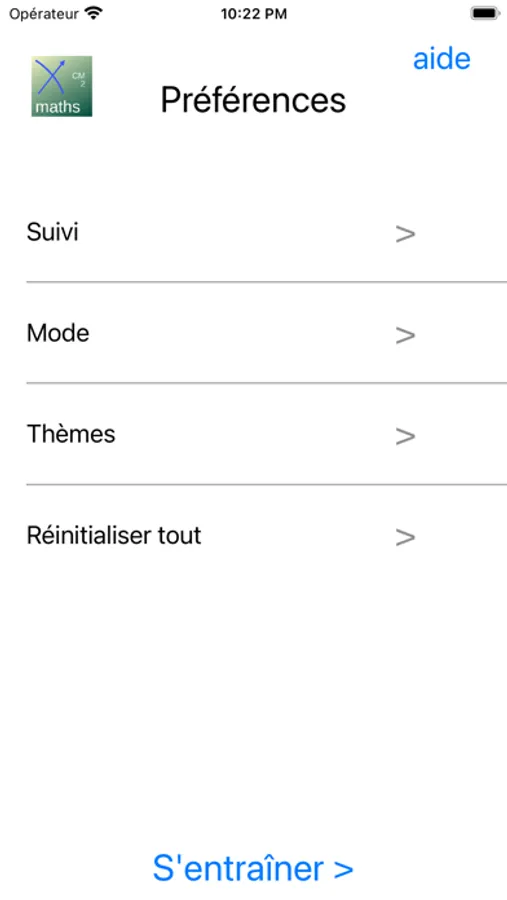 Simple d'utilisation pour l'enfant, l'application propose des exercices par thème et par niveau puis affiche la correction.