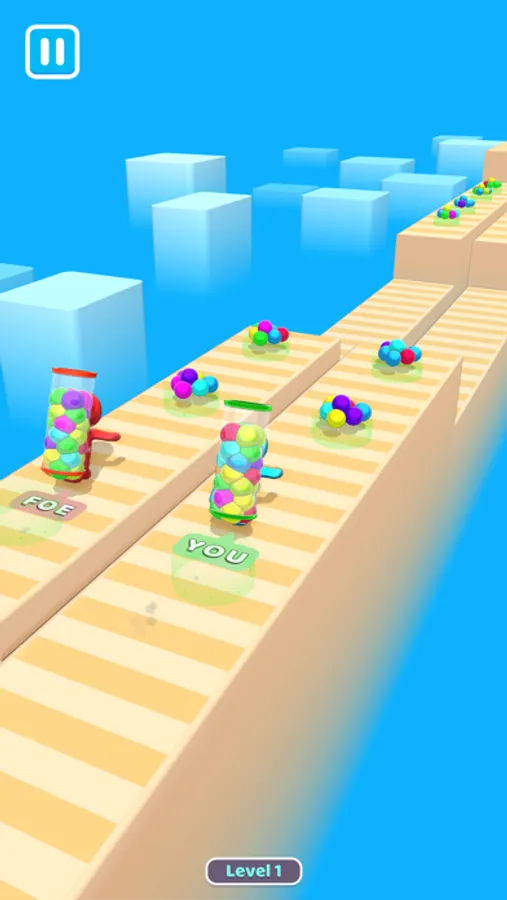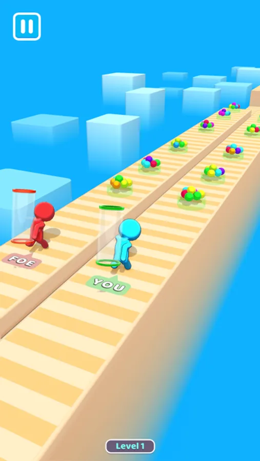 Collect the balls on the platform, touch the screen when you enter the pit, exit the pit and reach the finish!