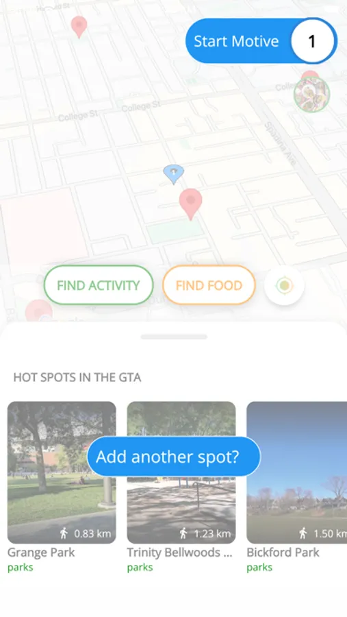 Motive helps a user determine which activities and restaurants suit their mood or preference while highlighting the best the city has to offer. The app provides filters that refine activity/food recommendations based on location, interests and users’ moods. Based on the results the user can select a restaurant or activity and then choose to extend their outing by pairing it with another selection to create a unique experience.