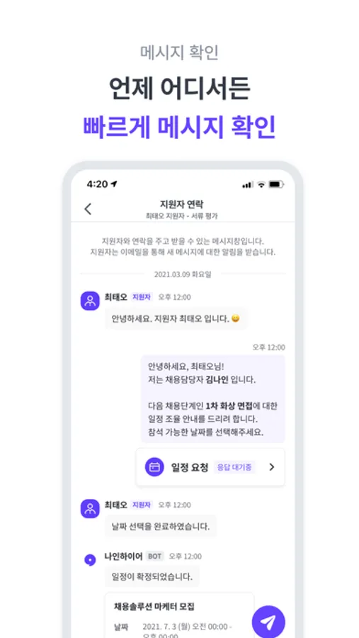 언제 어디서든 실시간을 지원자를 관리하고
