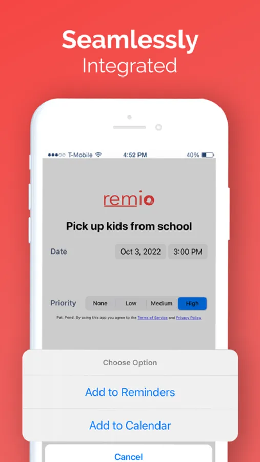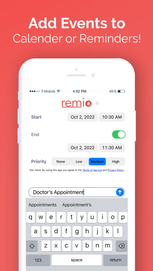 Easily send events over text that can be added to reminders or calendar - in individual chats as well as group chats. With Remio, you don't have to worry if someone will remember - ensure they do by sending them a reminder or invite that they can add on their own device.